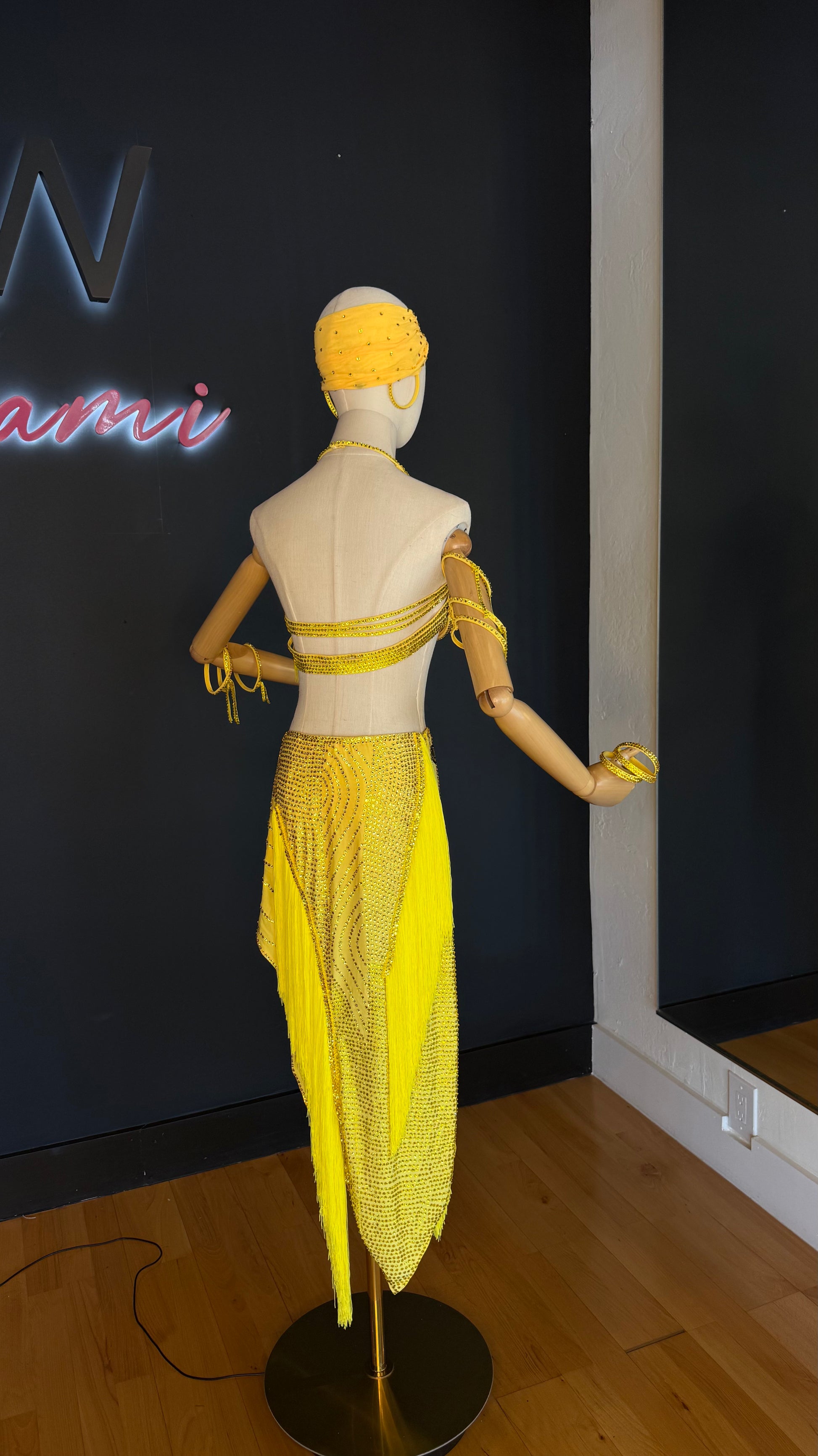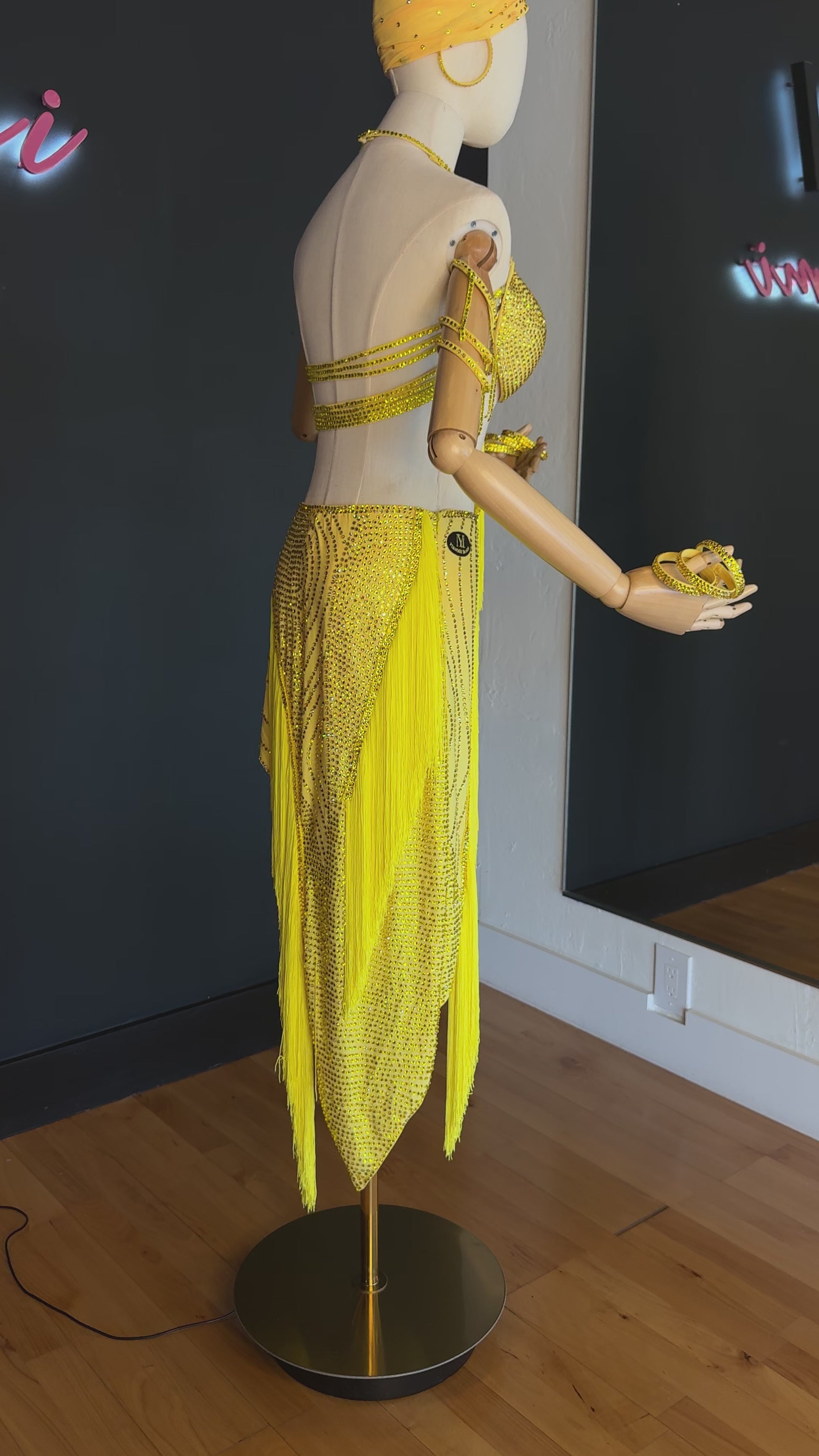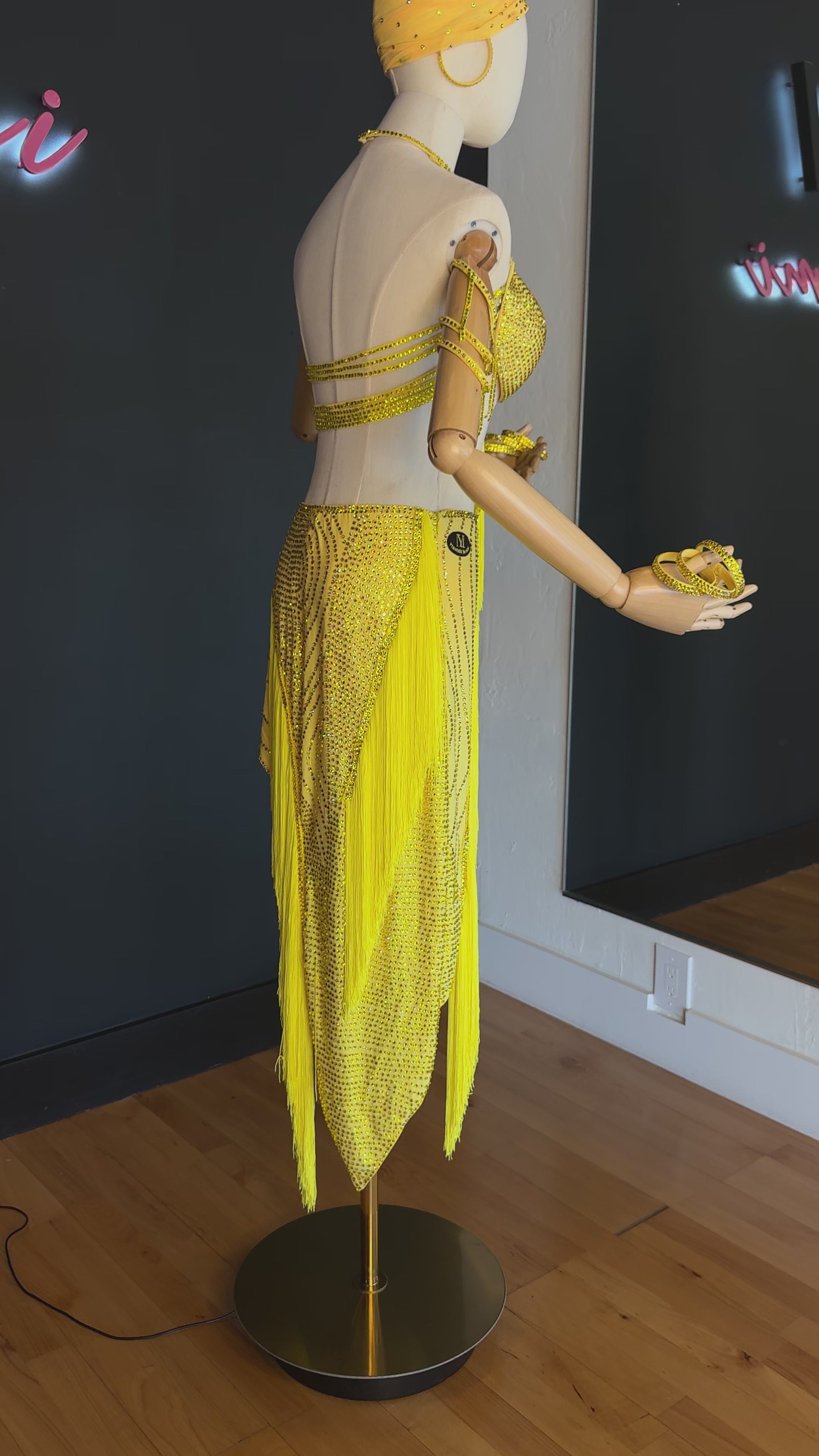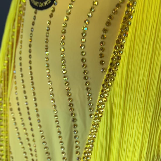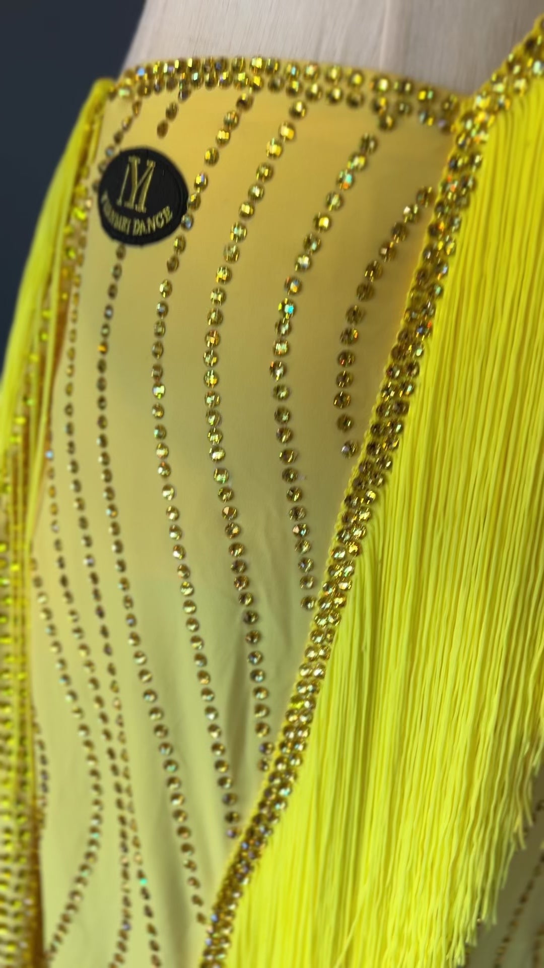 Yellow Latin Ballroom Dress – Swarovski Crystals & Fringe – Custom Fit (Size S/M)
